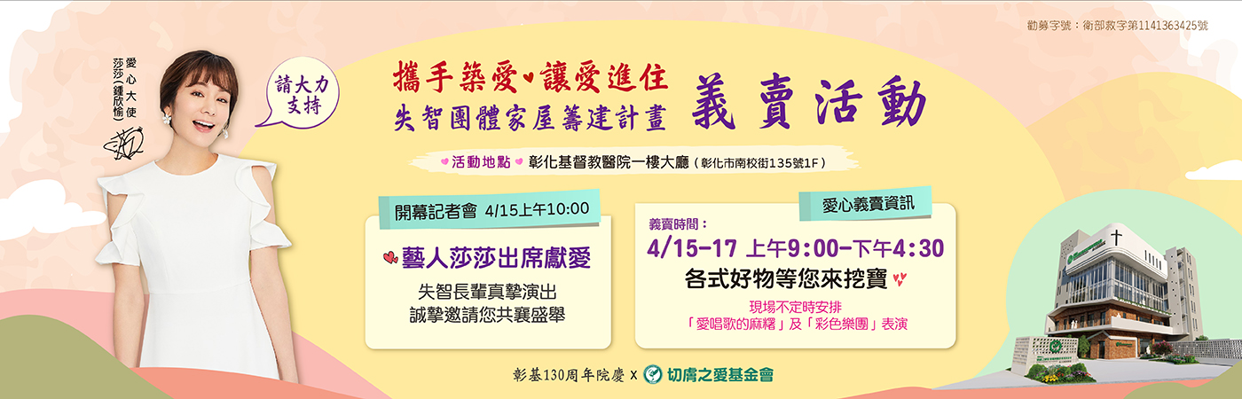 愛心大使「莎莎」 4/15蒞臨切膚之愛義賣活動,邀您一同支持失智團體家屋籌建計畫