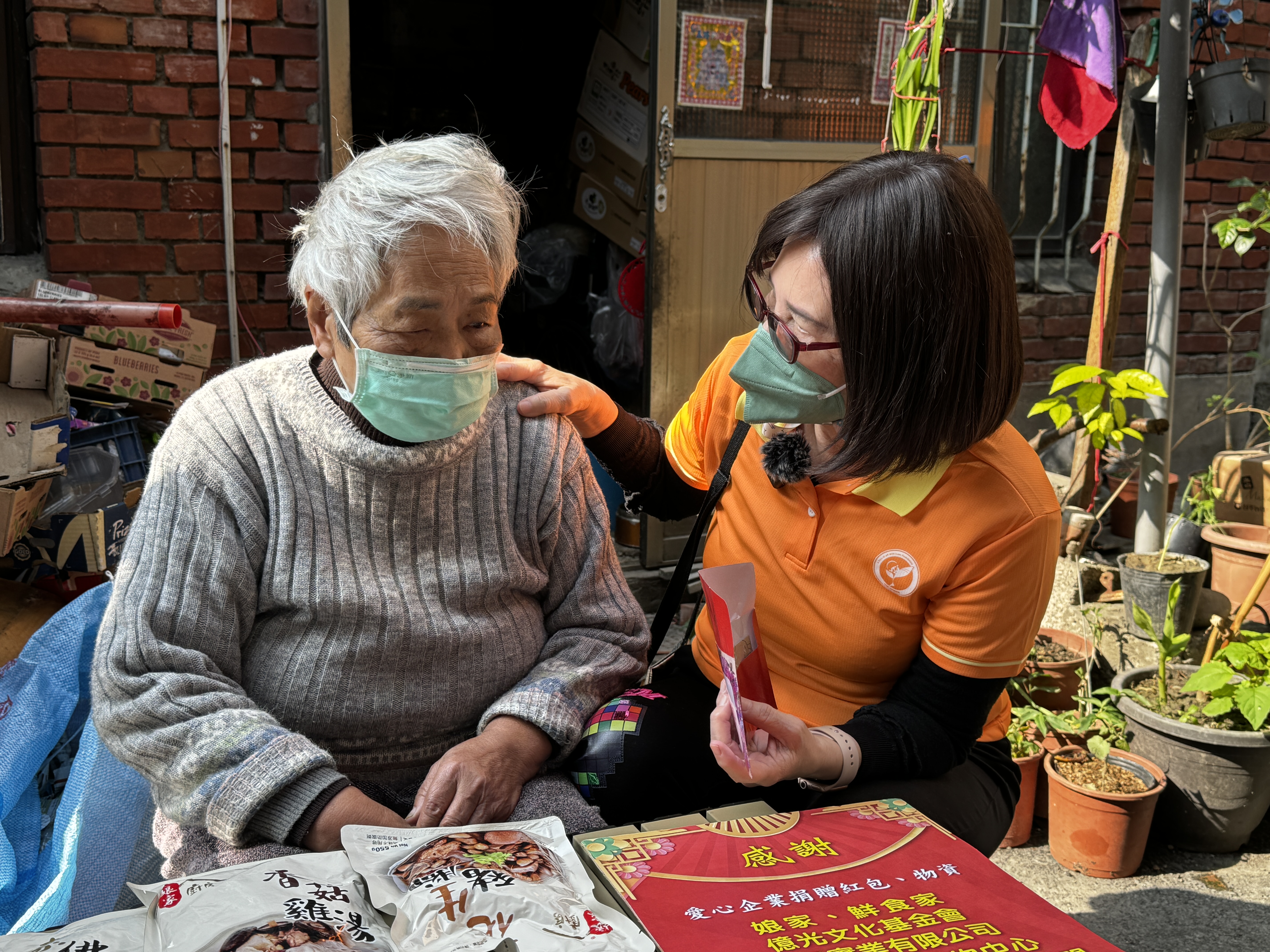 農曆新年前夕更帶著滿滿的愛來關心他們,團隊精心準備了熱鬧的「抽紅包闖關」遊戲,邱姐及許阿嬤開心地完成任務,幸運贏得紅包及整套年菜,看著她們露出許久不見的笑容,更觸動我們要繼續積極服務更多的弱勢家庭。