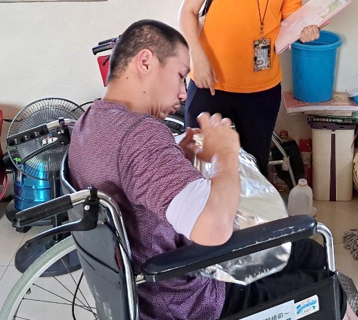 阿宇為腦性麻痺患者,喜歡玩耍的他
