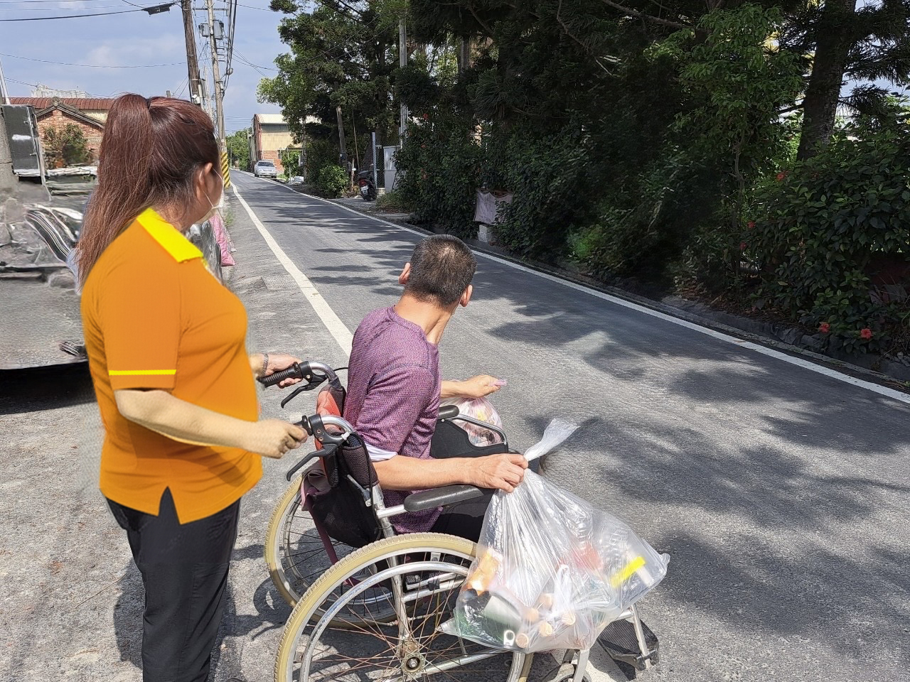 當阿宇親手將垃圾交給清潔人員時,