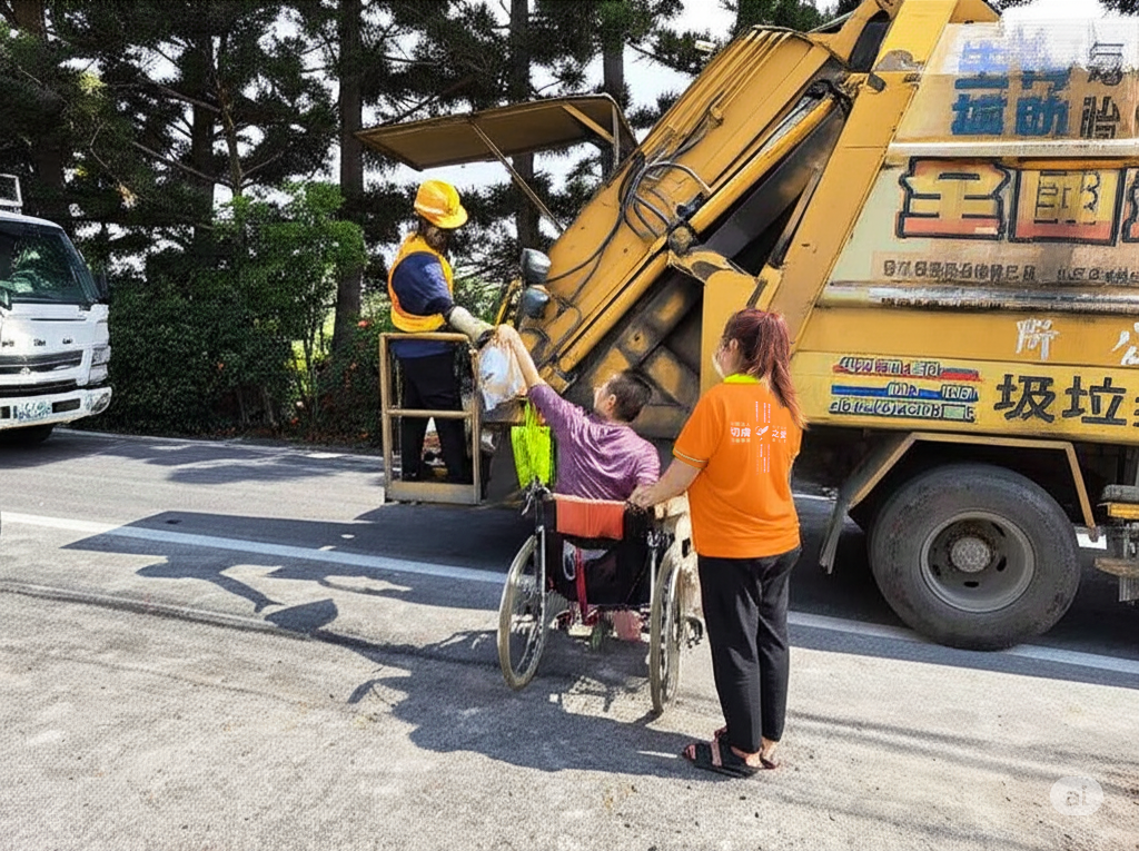 以跟著居服員一起完成倒垃圾的任務。
