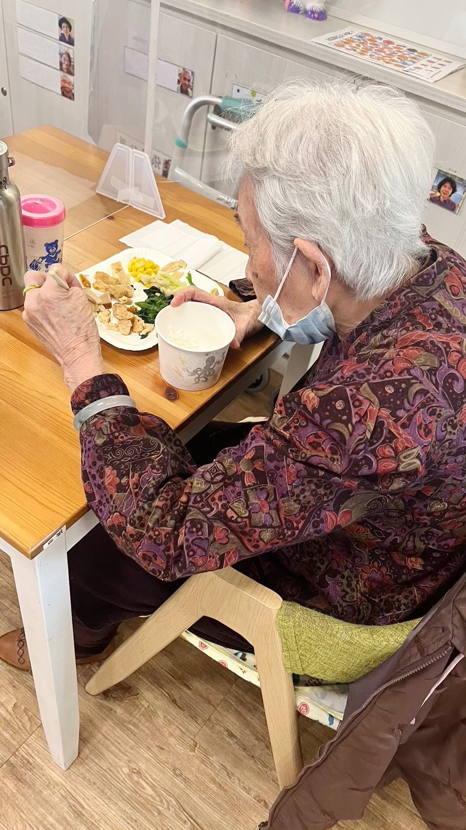 她能穩定用餐,也會鼓勵阿姨採少量