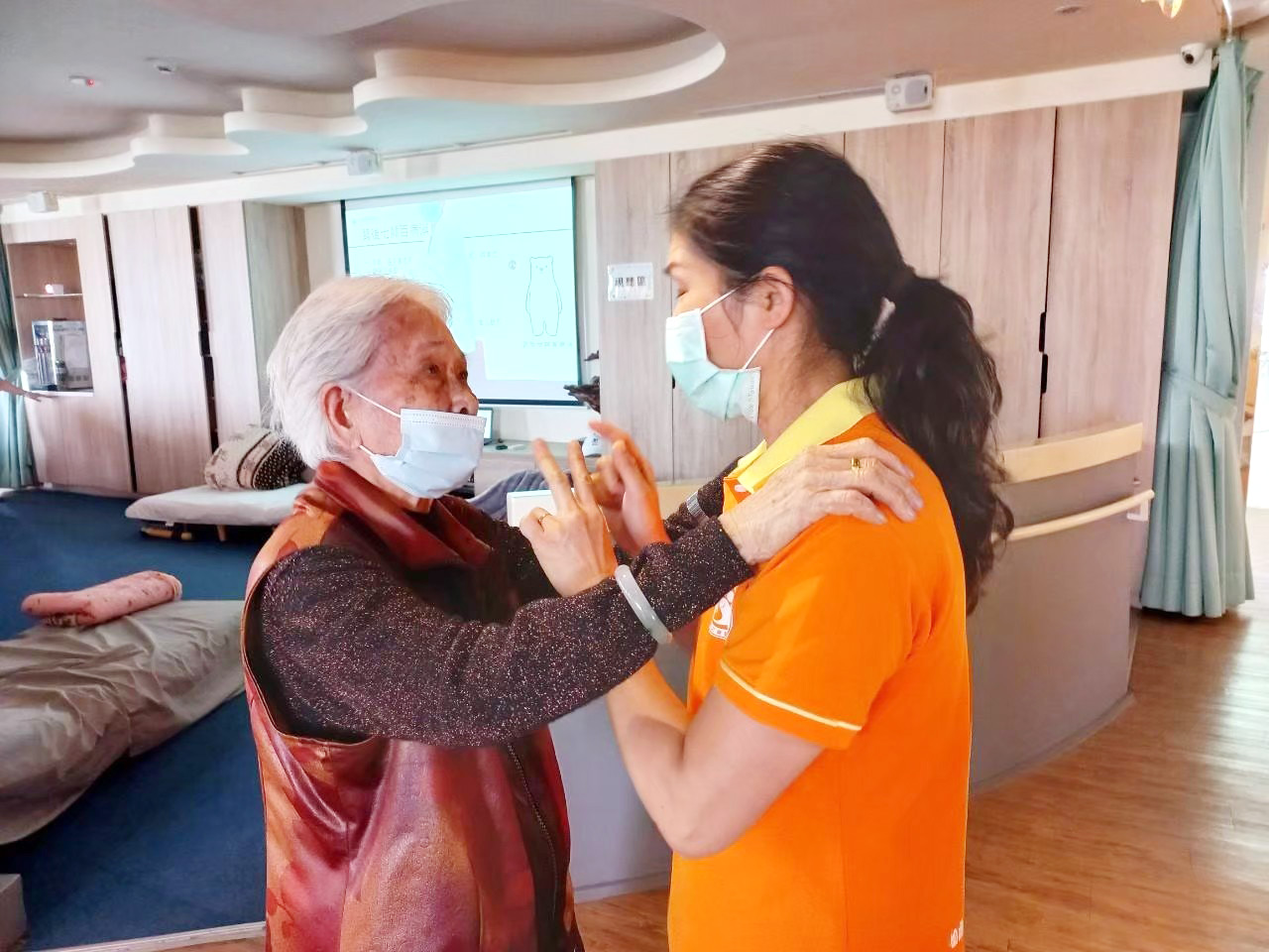 照服員詢問:「雪姨,您肚子餓嗎?」