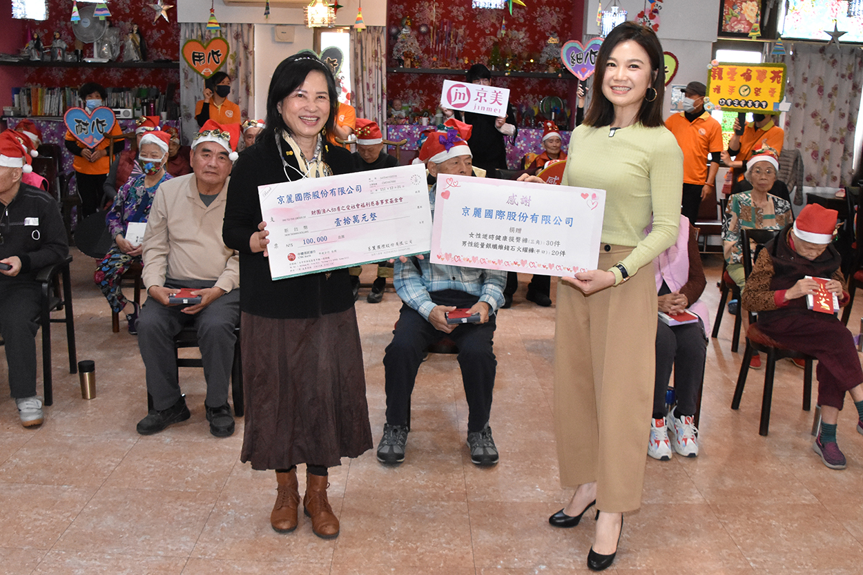 在這個充滿愛與關懷的聖誕季節,京美集團長年熱心公益、關懷弱勢不遺餘力,今(21)日聖誕節前夕,京美集團創辦人暨董事長呂麗美特地前往魏愛倫學苑報佳音,準備健康能量內褲贈予日照長輩,並捐贈十萬元作為失智照顧服務基金,為這群長者獻上一份特別的聖誕祝福,溫暖了老寶貝們的心。