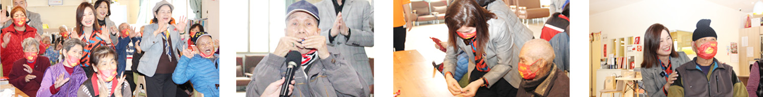 活動當日,連瑪玉學苑最高齡的97歲黃爺爺,特別用珍藏60年的口琴即興演出,歡迎並感謝貴賓們不顧路途遙遠前來關懷,他精彩的表演博得滿堂喝采;隨後,貴賓們陪伴長輩一起完成「年年有魚」作品,意寓著連瑪玉學苑全體長輩祝福京美集團賺大錢「年年有餘」,也期盼「台北美麗頭家娘」每年都能帶著滿滿的愛,回來探望他們;呂董事長也回禮贈送每位長輩高能量多功能圍脖,並逐一為長輩佩戴上,祝福大家身體健康。