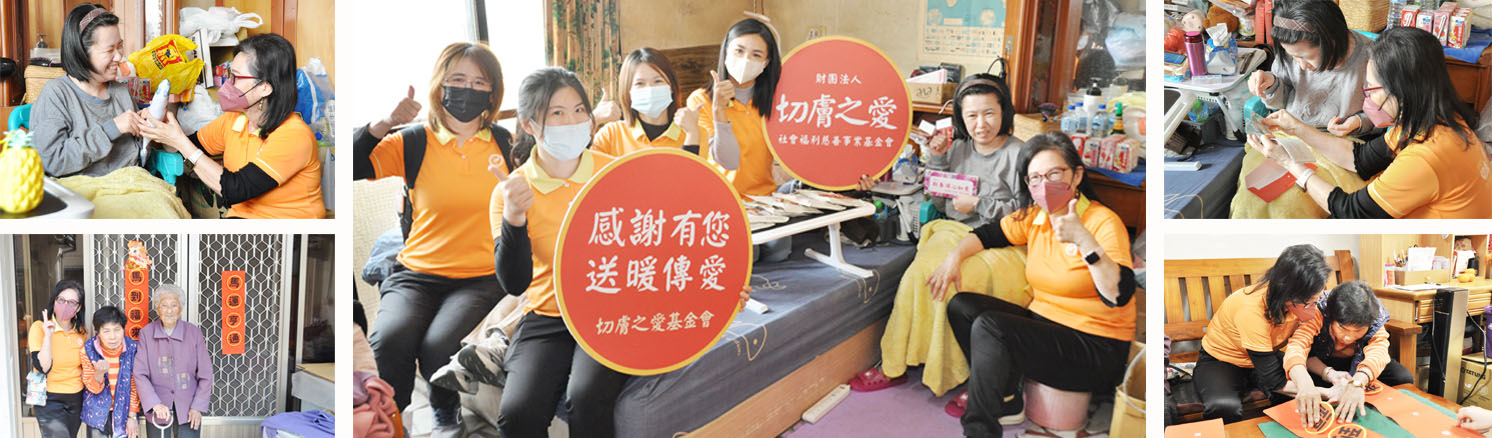 切膚之愛基金會,今年迎新春關懷活動能順利達成,藉此再次特別感謝娘家保健生技、鮮食家及億光文化基金會簡文秀董事長,長期關注弱勢族群的需求,年年以實際行動支持公益。娘家保健生技與鮮食家透過新聞行銷曝光與年菜平台認購模式,讓民眾響應公益,募集年菜再轉贈給切膚之愛基金會所服務的弱勢個案;億光文化基金會簡文秀董事長也是年年心繫切膚之愛基金會弱勢長輩,今年再度捐贈100份紅包,希望長輩能歡喜過年。