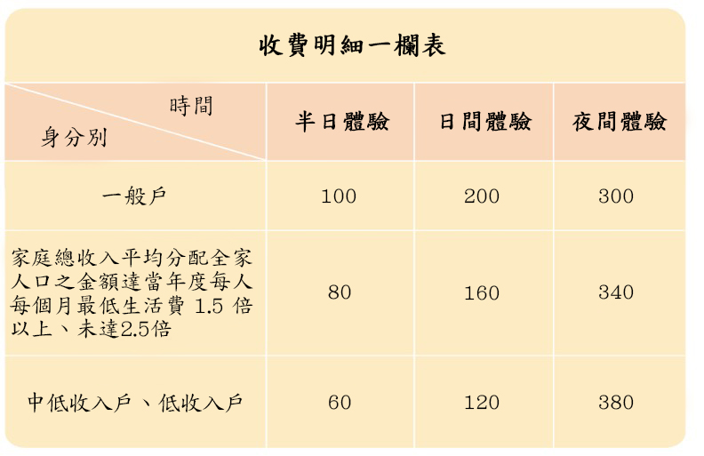 註:連續夜間體驗五天,則可享優惠1200元 / 5天