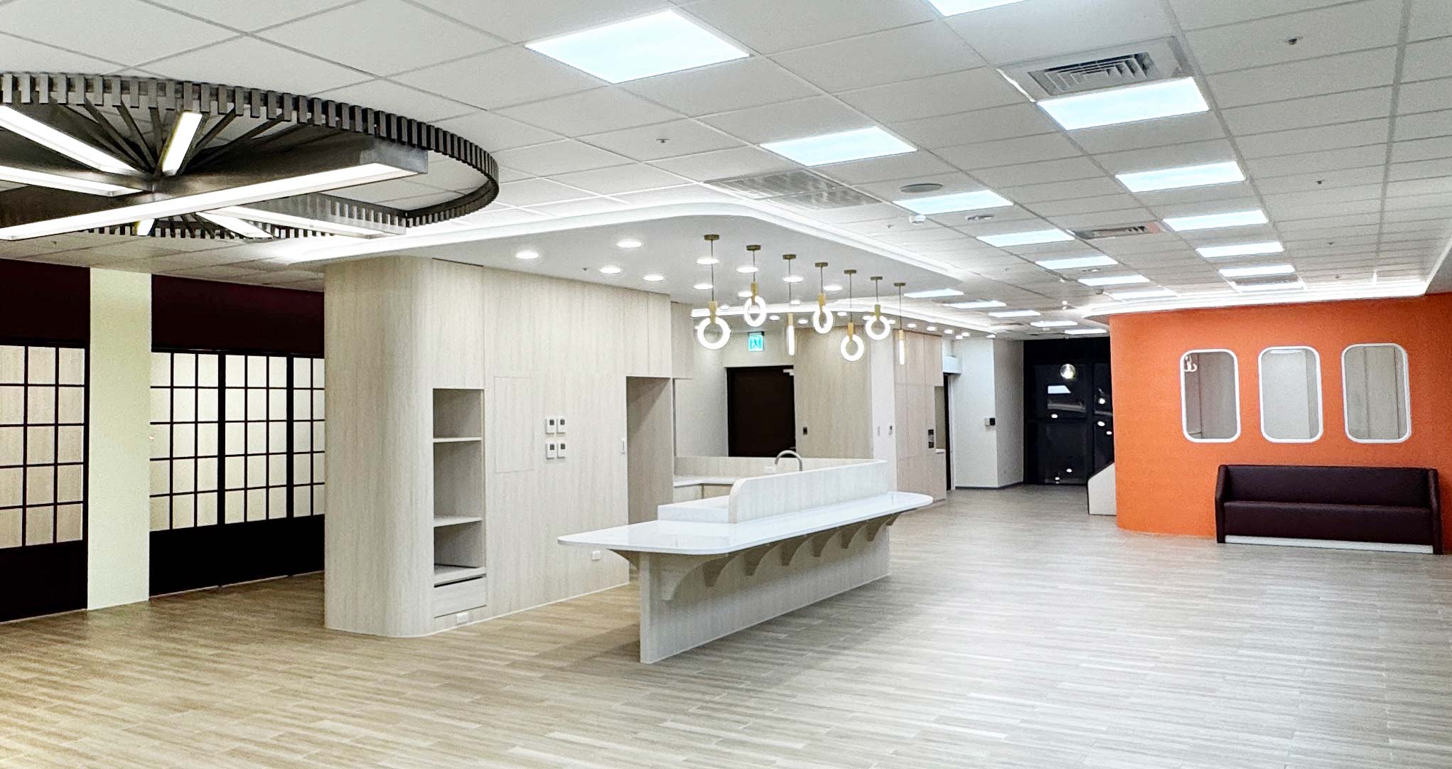《互動廚房》 互動廚房是長輩喜愛動手料理的空間,透過老師引導進行美食 DIY,廚房配置可彈性調整,讓用餐時能彼此互動,提升食慾與參與感。 |